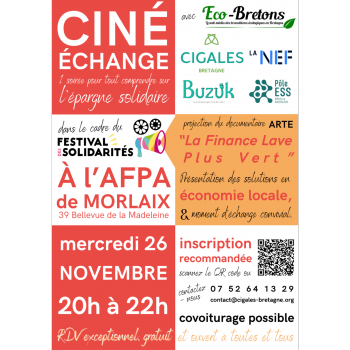 Au programme, présentation de l'épargne solidaire, explication du fonctionnement d'un club d'investisseurs solidaires CIGALES, puis échange avec des cigalières bretonnes et des cigaliers bretons sur leurs expériences d’investisseurs solidaires.
